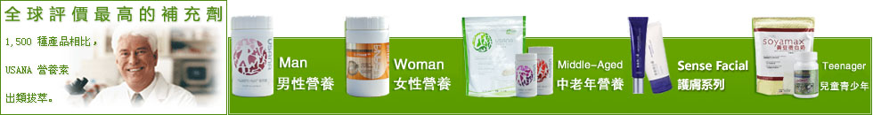 例如USANA创新产品"基本营养素", "葡萄籽精华"及"钙镁片"。 "基本营养素"包括"超级抗氧化剂"和"多种矿物质",提供身体所需全面均衡抗氧化剂,维他命和矿物质。"葡萄籽精华"是USANA的一种强效抗氧化剂,产品包括葡萄籽中的前花色素和维他命C(由USANA矿物维生素C所提供)。研究指出前花色素和维他命C有互相协同作用,比只服用两者其中一种抗氧化剂更能提供有效的抗氧化效能。