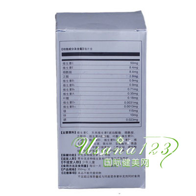 【功效成分及含量】每片含维生素C 50mg、维生素E 8.4mg